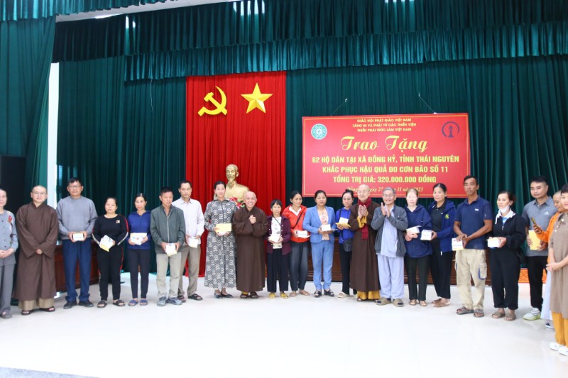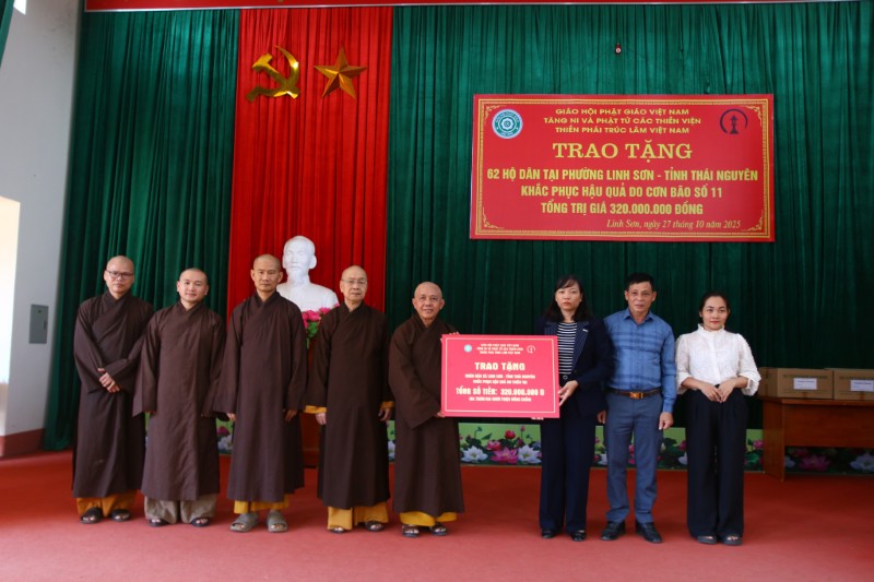 Vừa qua, trong hai ngày 27 và 28/10/2025, Đoàn Tăng Ni và Phật tử từ các Thiền viện thuộc Thiền phái Trúc Lâm Việt Nam đã trực tiếp đến thăm và trao quà tại phường Linh Sơn, xã Đồng Hỷ và xã Na Rì, tỉnh Thái Nguyên - những địa phương chịu nhiều thiệt hại nặng nề sau đợt mưa lũ vừa qua.