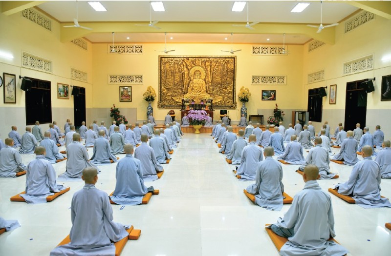 3g00 thức chúng, 3g15 chư tôn đức Tăng trụ trì cùng toàn thể đại chúng vân tập về Thiền đường TV Thường Chiếu, chư Tôn đức Ni vân tập về Thiền đường TV Linh Chiếu trang nghiêm tĩnh tọa. Đại chúng kết thúc thời thiền trong niềm hoan hỷ,khinh an.