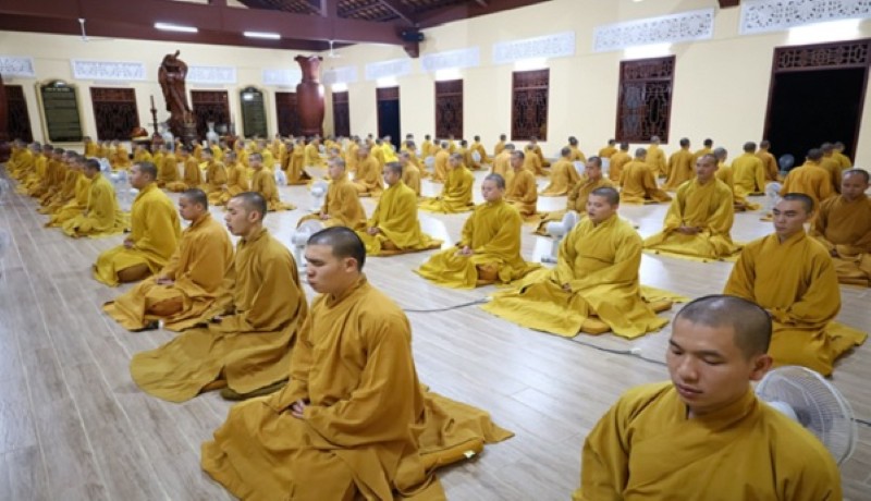 Các thiền sinh trường Thiền Phật học Trúc Lâm trong giờ tọa thiền tại thiền đường
