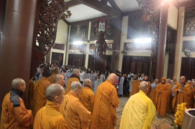 Sau đêm Phổ trà Chư Tôn đức Tăng Ni đã cử hành Lễ vía Phật Di Lặc.