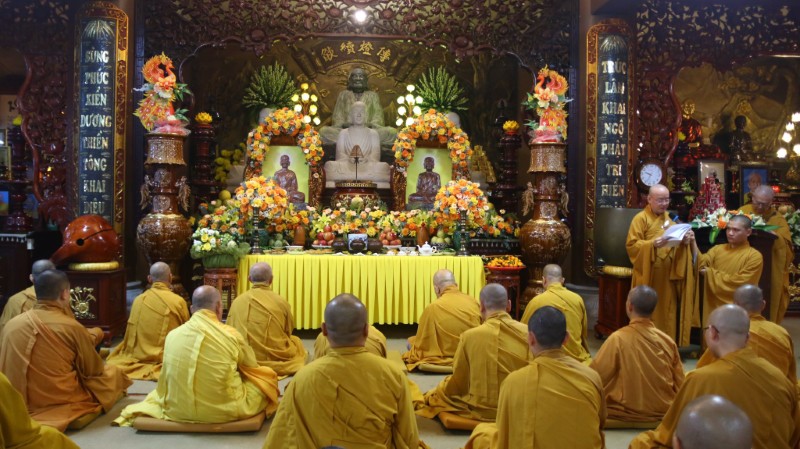 Buổi lễ diễn ra trong không khí trang nghiêm thanh tịnh, sau nghi thức cúng Phật và cúng Tổ, Quý Thầy đã cung tuyên lại hành trạng của Sơ Tổ Trúc Lâm và Thiền Sư Chân Nguyên. Toàn thể đại chúng đã có thời tọa thiền cúng dường Tổ Sư.