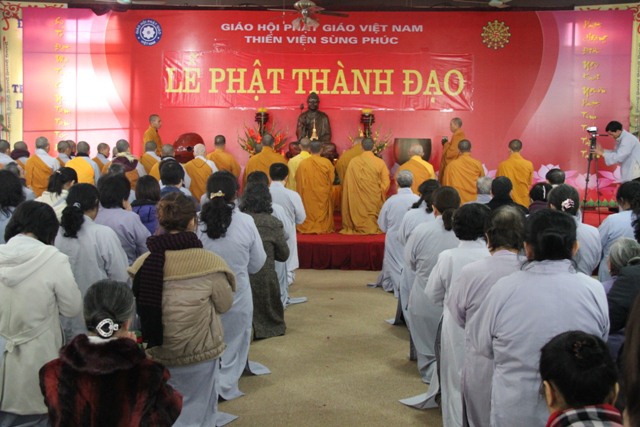 Ngay từ sáng sớm ngày 8 tháng 12 Tân Mão(01/01/2012), Toàn thể chư Tăng ni cùng đông đảo Phật tử đạo tràng Trúc lâm Sùng Phúc đã vân tập về Thiền viện Sùng Phúc ( Cự Khối- Long Biên) để cùng cung đối trước Phật đài thành tâm đốt nén tâm hương dâng lên cúng dường đức Từ Phụ và cử hành nghi thức Lễ Phật thành đạo nhằm ôn lại sự kiện giác ngộ của Ngài và để nhắc nhở, củng cố thêm niềm tin Chánh đạo của bản thân trên bước đường tu tập.