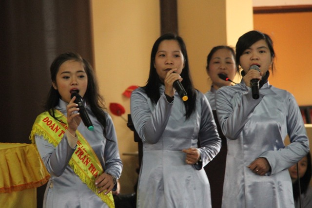 Mở đầu buổi lễ, Phật tử Diệu Hoa- Thu Cúc cùng tốp ca nam, nữ thanh thiếu niên Phật tử Đoàn Trần Thái Tông đã ca mừng đấng Từ Phụ và để bày tỏ tấm lòng thành kính tri ân sâu sắc của những người con Phật, đại diện các em thiếu nhi Phật tử đã kính cẩn dâng lên những hương hoa thơm ngát cúng dường Đức Thế Tôn.