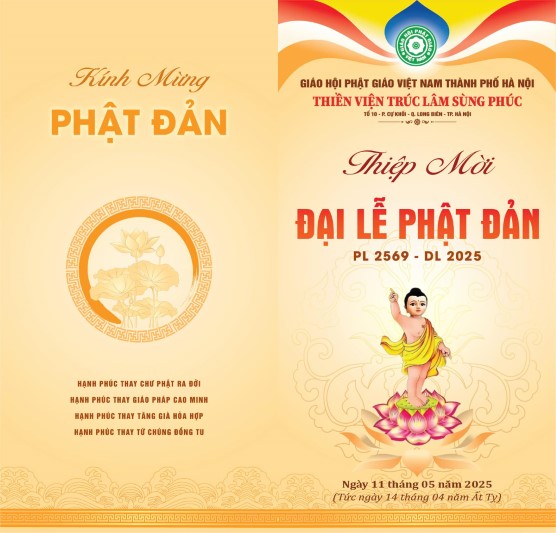 Để tỏ lòng thành kính, tôn kính và tri ân vô lượng vô biên đối với công hạnh giáo hóa và độ sinh của Đức Từ Phụ Bổn Sư Thích Ca Mâu Ni Phật, hòa trong niềm hân hoan cùng Phật tử cả nước đón mừng Đại Lễ Vesak LHQ, Thiền viện Trúc Lâm Sùng Phúc tổ chức Lễ Phật Đản vào ngày 14/04 năm Ất Tỵ (nhằm ngày 11/05/2025).